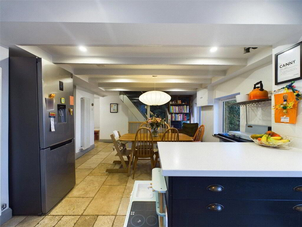 The interior offers spacious, thoughtfully designed accommodation. At the heart of the home is a generous kitchen/dining area, where French doors lead directly to the rear garden, making it ideal for entertaining or relaxed family living. The inviting living room exudes warmth and character, while a separate office or occasional bedroom adds flexibility to the ground floor layout. Upstairs, three well-appointed bedrooms provide comfortable sleeping quarters, with each room enjoying views of the surrounding countryside.