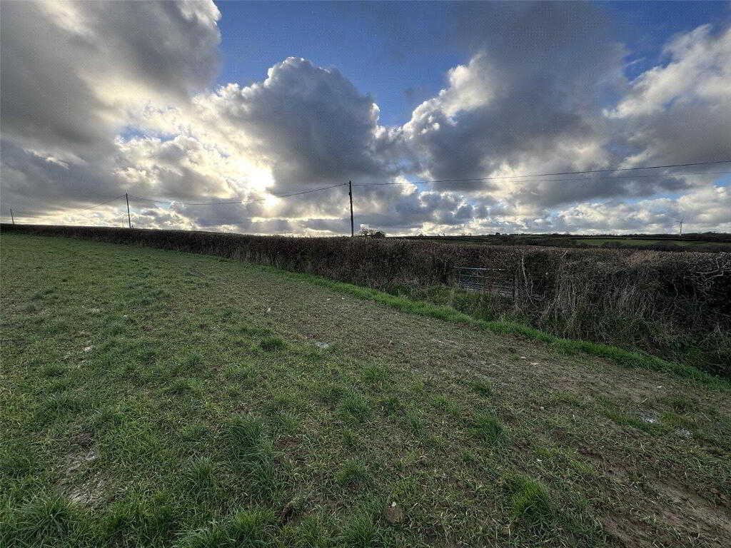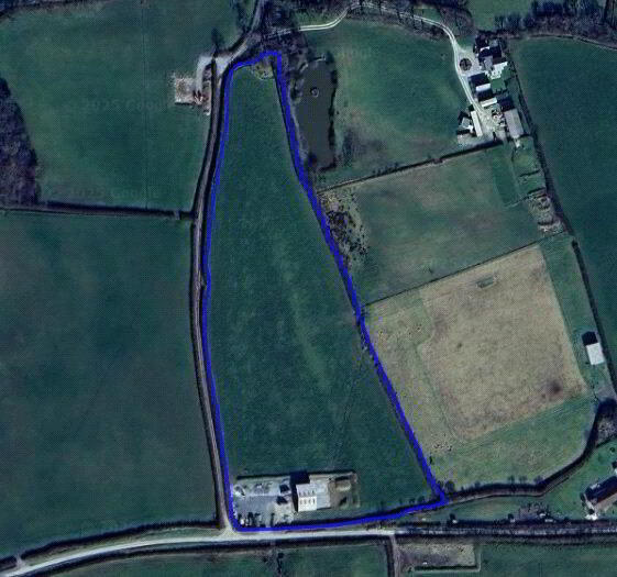 Planning permission was originally granted for a building 80' x 60', offering scope for future enlargement if desired. The land itself gently slopes northwards and is enclosed by traditional Cornish hedgerows, with an additional access point halfway down the field via a five-bar gate.