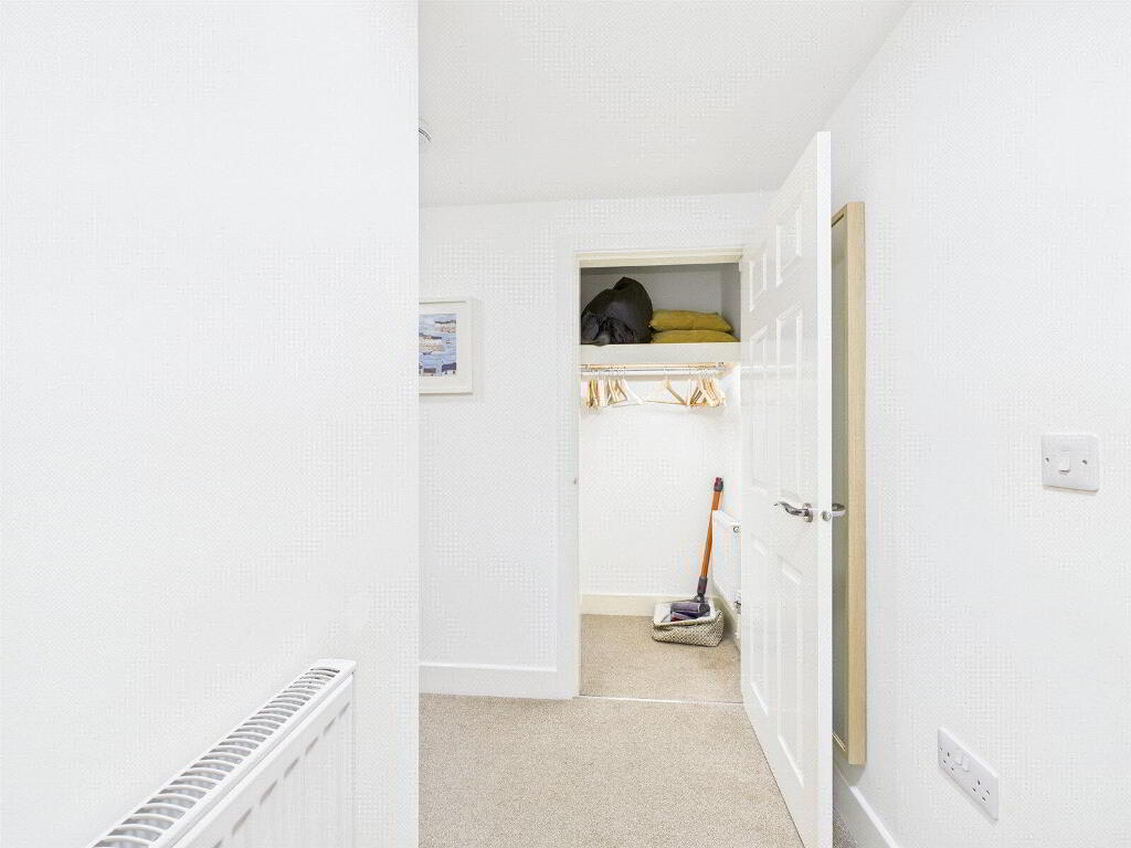 The spacious open-plan living and kitchen area is bright and welcoming, perfect for relaxing or entertaining. The bedroom is a generous size, and the sleek modern bathroom adds to the flat’s overall quality feel. The hallway also benefits from large built-in cupboards, offering excellent storage space.
