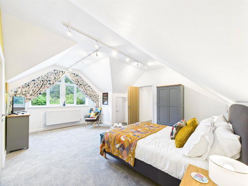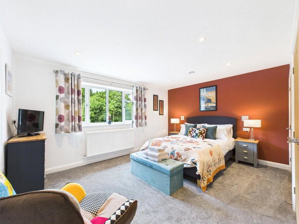 Occupying the entire top floor is the exceptional master suite, offering far-reaching countryside views towards the iconic Roughtor. The luxurious en-suite is finished to a superior specification and includes a large walk-in shower, separate bath, his and hers sinks, and an LED de-mist mirror.