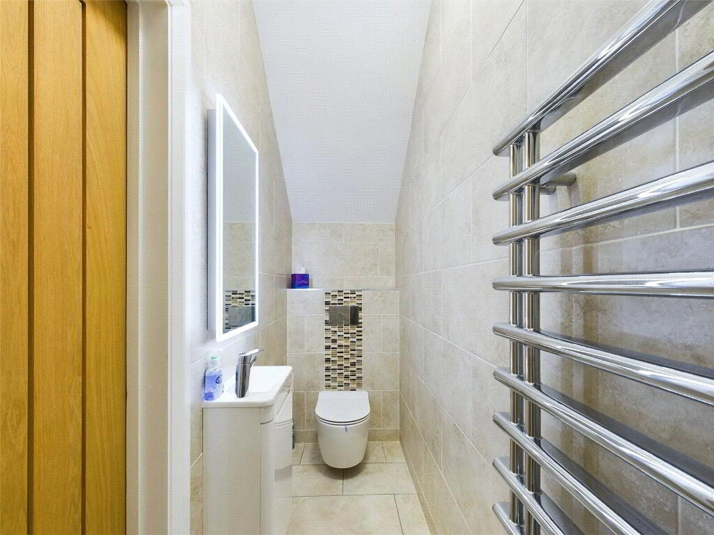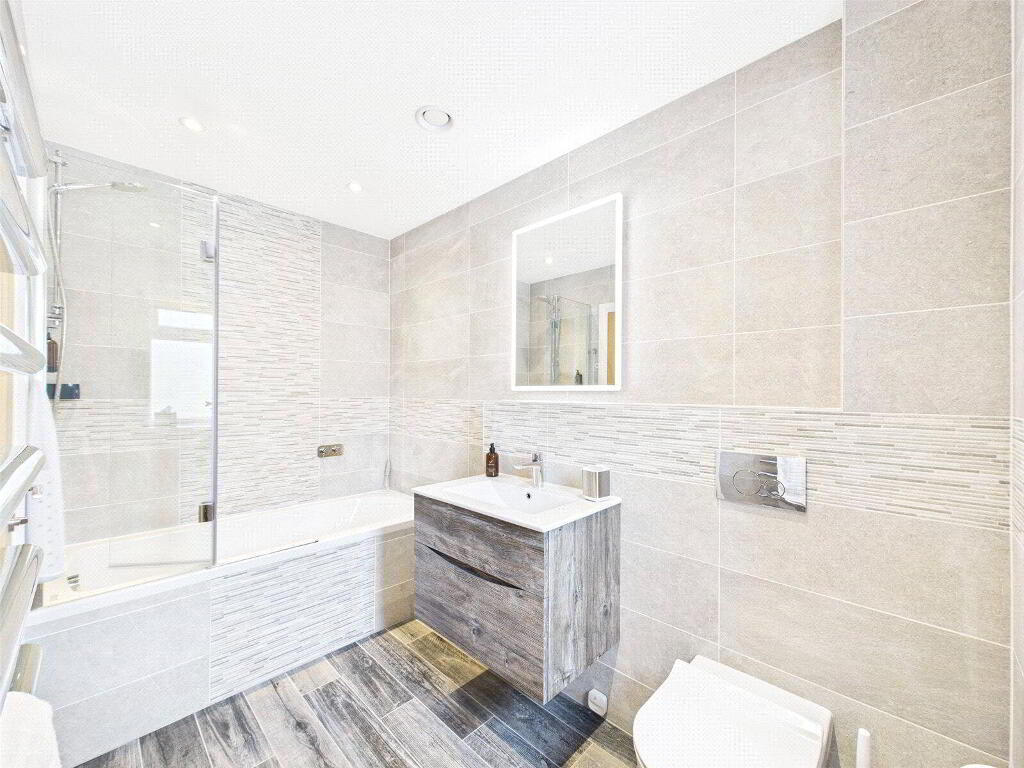 The first floor comprises four generously proportioned double bedrooms, two of which benefit from contemporary en-suite bathrooms. A beautifully finished family bathroom features a large walk-in shower, separate bath, anti-mist LED mirror, and elegant floor-to-ceiling tiling.