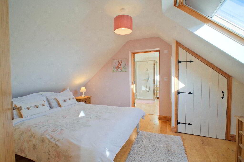 Upstairs, the first floor provides 3 well-proportioned Bedrooms, each enjoying pleasant outlooks, alongside a Family Bathroom. From the landing, a large hatch leads to a spacious Loft Room illuminated by Velux windows, offering excellent storage or scope for use as a hobby room or home office. In addition, extensive eaves storage is accessed from the landing, ensuring the home remains as practical as it is characterful.