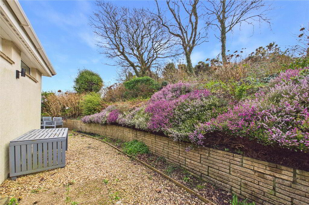 Externally, the property continues to impress. The side and rear gardens enjoy a sunny aspect and have been thoughtfully arranged with a patio seating area and terraced sections planted with mature shrubs, creating privacy and colour throughout the seasons. Importantly, the home is not overlooked, enhancing the sense of seclusion and tranquillity. Further benefits include off-road parking and a single garage.