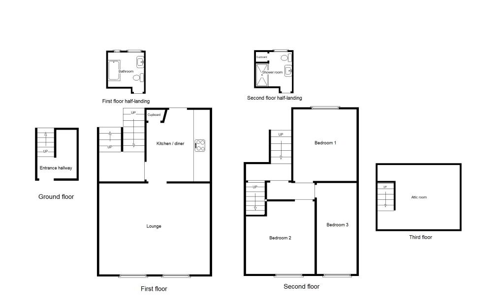 The property comprises of a ground floor entrance hallway up to the well-sized kitchen/diner and large lounge on the first floor, and up again to three double bedrooms on the second floor. There is a family bathroom and a separate shower room with walk in shower on the first half and second half landings respectively. In addition, there is also a handy attic room providing significant storage space.