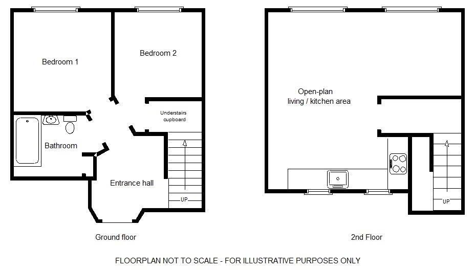 This property has been converted to maximise the available natural light and the open-plan first floor offers a light and bright living and dining space and a tasteful modern kitchen area. On the ground floor there are two well-sized double bedrooms, a separate bathroom, and entrance hallway with convenient storage space.