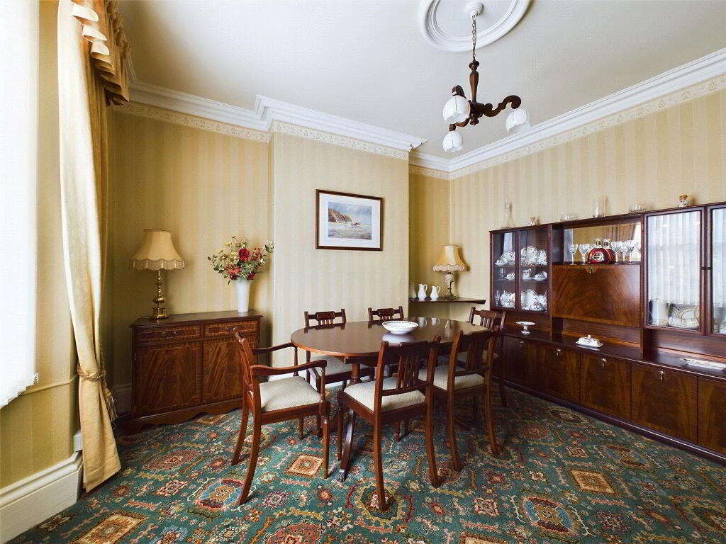 A well presented and characteful room with original ceiling rose and coving. Ample space for a dining room table and chairs. Window to front elevation.