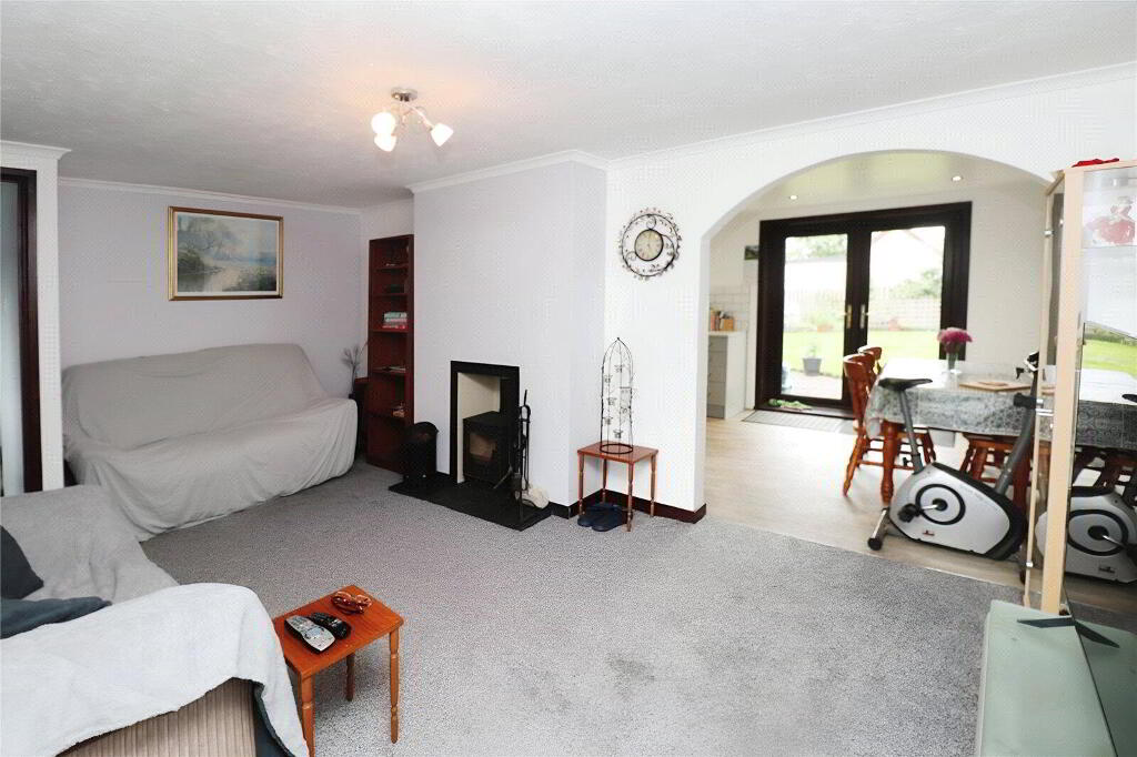 Spacious reception room with feature wood burning stove and slate hearth. Window to front elevation.