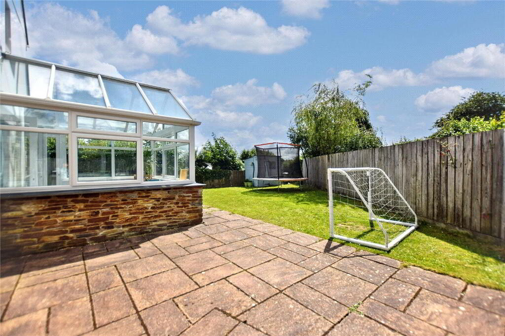 - Entrance driveway/parking area with access to garage. Level enclosed gardens principally laid to lawn with 2 large paved patio areas providing an ideal spot for al fresco dining bordered by panel fencing. Timber Garden shed.