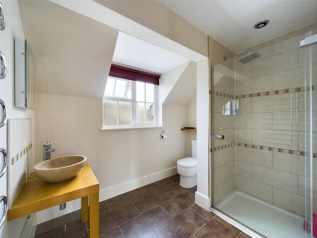 Well appointed suite comprising large shower cubicle, close coupled WC and wash hand basin on oak pedestal. - Bedroom 2