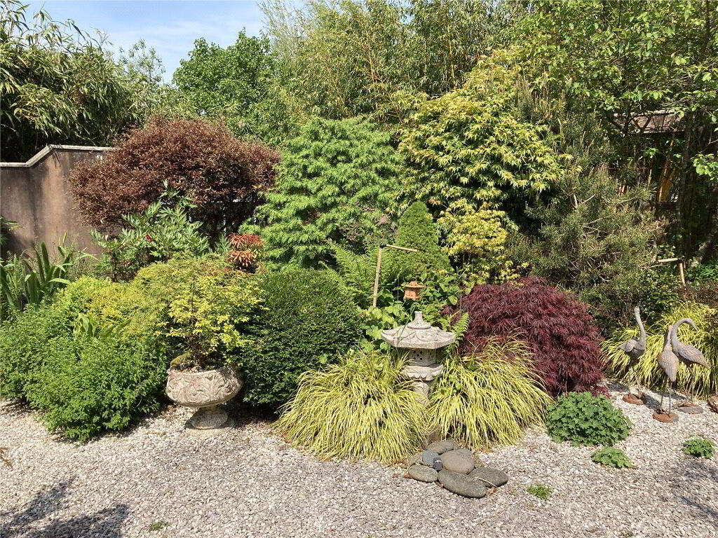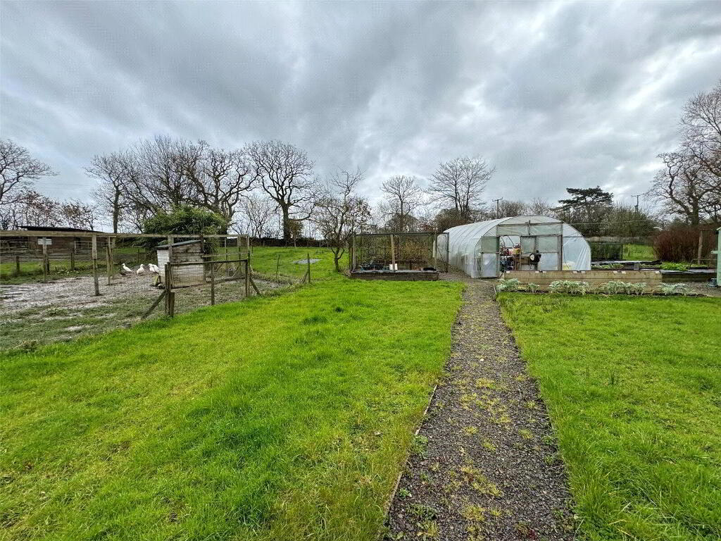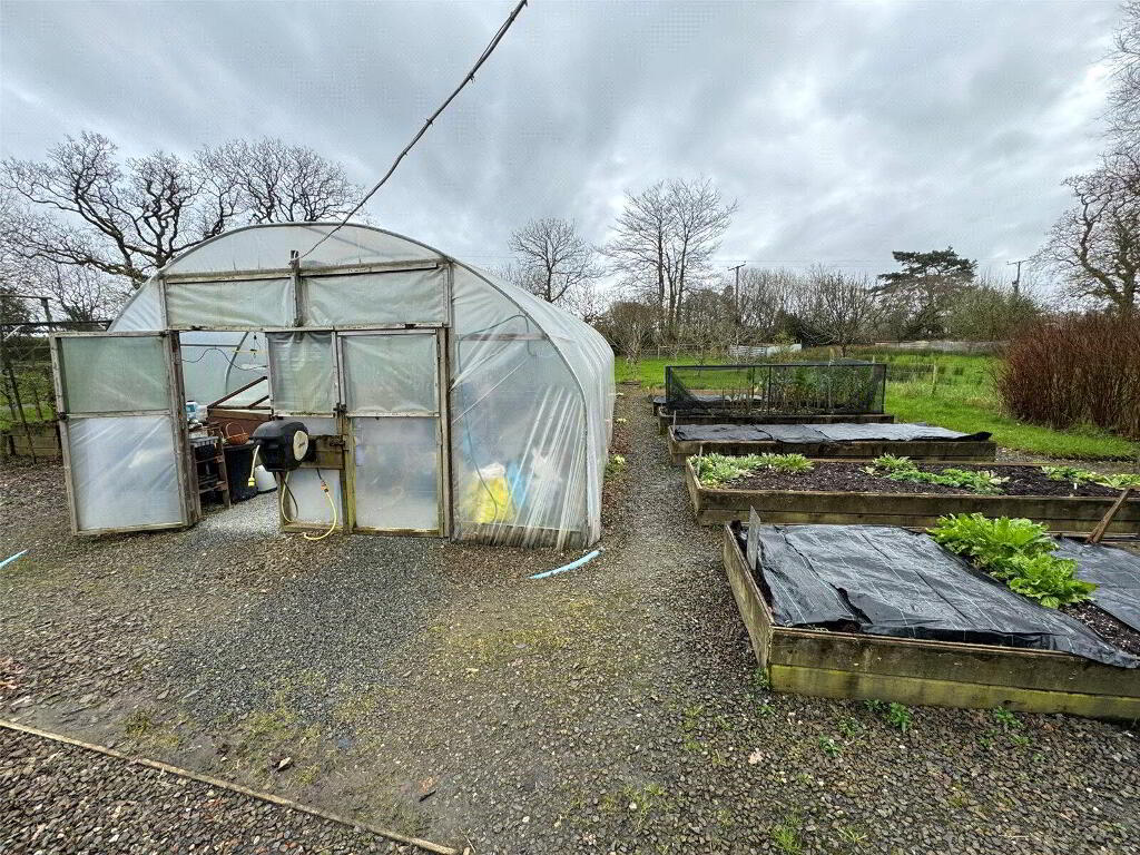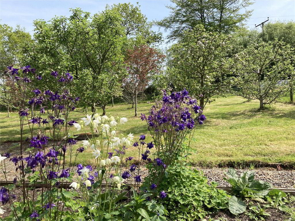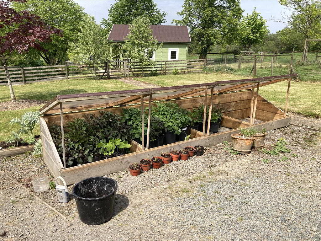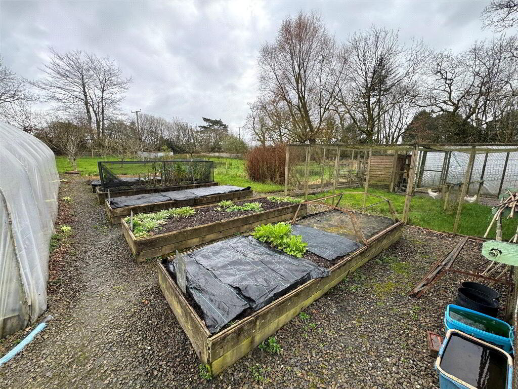 - The gardens at Woodruff are beautifully landscaped and need to be seen to be fully appreciated. A timber five bar gate gives access to the driveway providing extensive off road parking. Attractive front garden, a walled rear garden provides a sheltered and completely private spot, laid to gravel with various raised beds and well thought out planting, an ornamental pond with a water feature is the centrepiece of this stunning garden. A heated greenhouse and wall lighting throughout enhance this space. Walking further up into the gardens past a lawn with specimen trees, you reach the productive vegetable and fruit garden which houses 2 polytunnels with power and mains water, various raised beds, a large fruit cage, chicken and duck runs and a small pig rearing unit. There is an orchard with 26 mature fruit trees. In the paddock adjacent to the kitchen garden is an equine field shelter, with an enclosed yard and mains water. The top gardens can be accessed separately off the parish road, via a hardstanding yard area.
