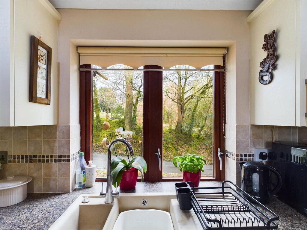 A spacious room overlooking the superb landscaped walled garden and pond. French glazed doors to rear - Kitchen