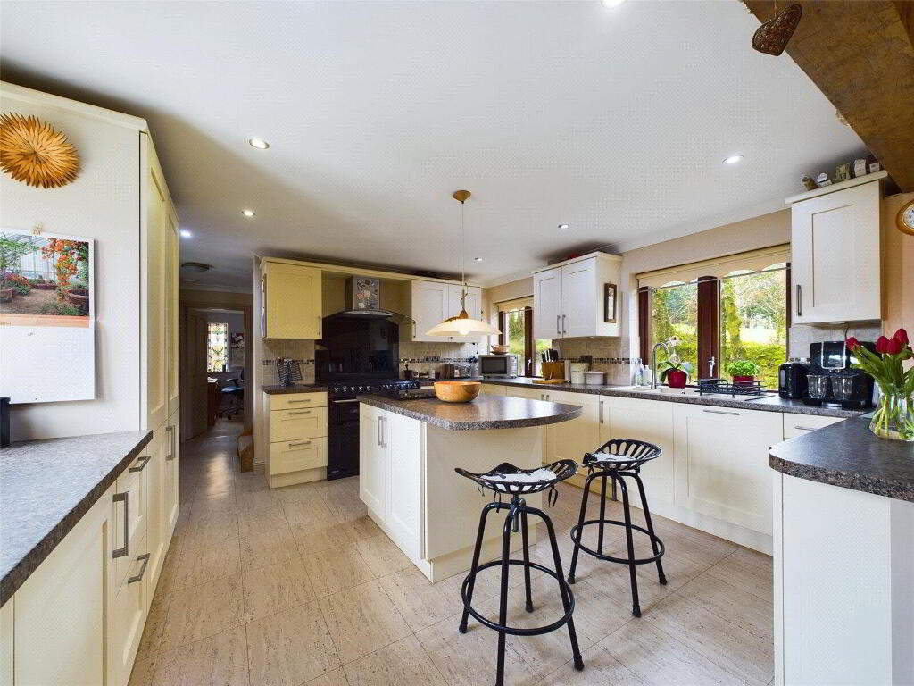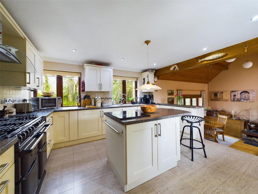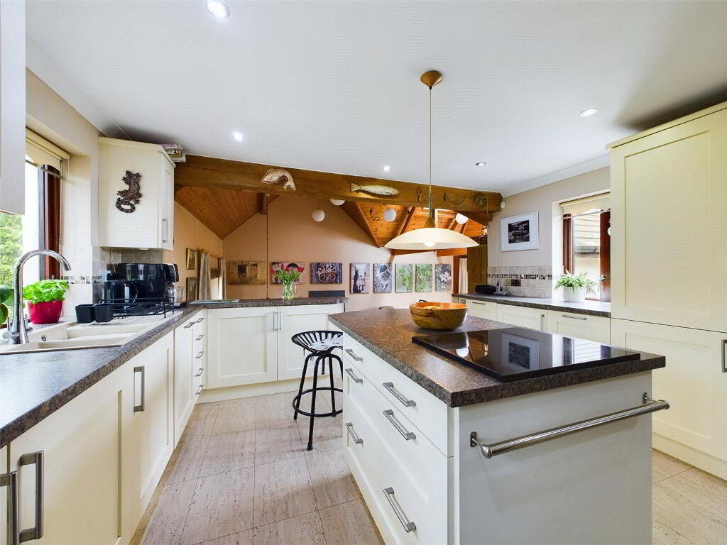 A superbly presented kitchen comprises a range of base and wall mounted units with work surfaces over incorporating a composite 1 1/2 sink drainer unit with mixer tap over. Space for range style cooker with extractor system over. Integrated fridge, freezer and dishwasher. kitchen island with breakfast bar. Window to front elevation. Steps down to- - Living Room