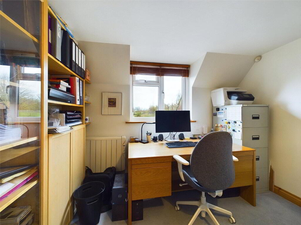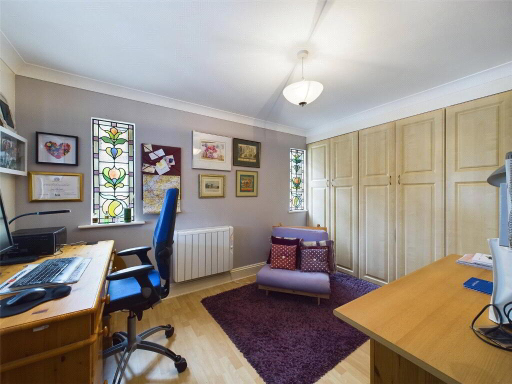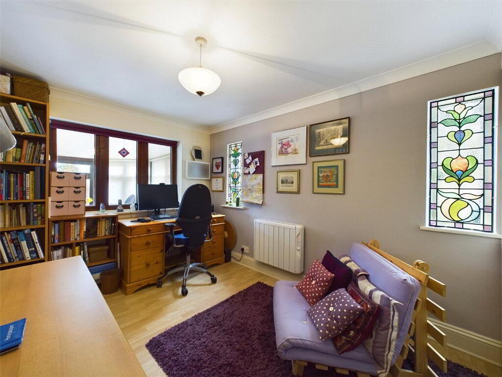 A ground floor room currently used as a study, equally suiting as a spacious ground floor bedroom with windows to side and rear elevations. - Cloakroom
