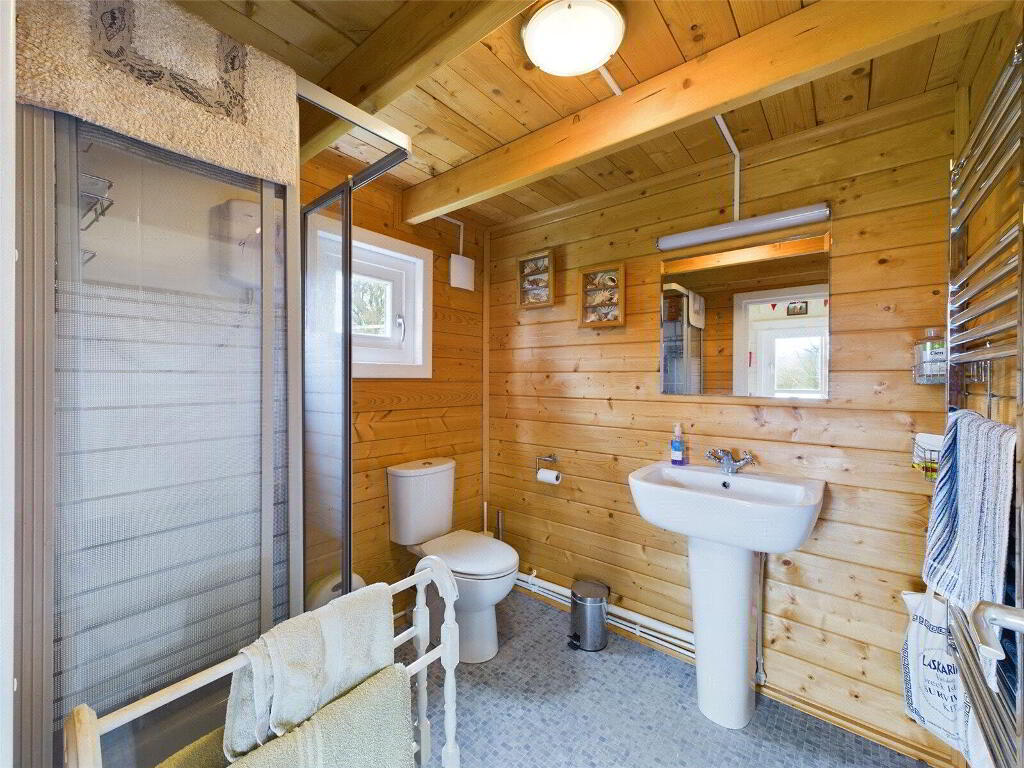 A well presented fitted suite comprises an enclosed panelled bath with a mains fed shower over, a close coupled WC, wash hand basin and a bidet. Window to rear elevation. - The Lodge