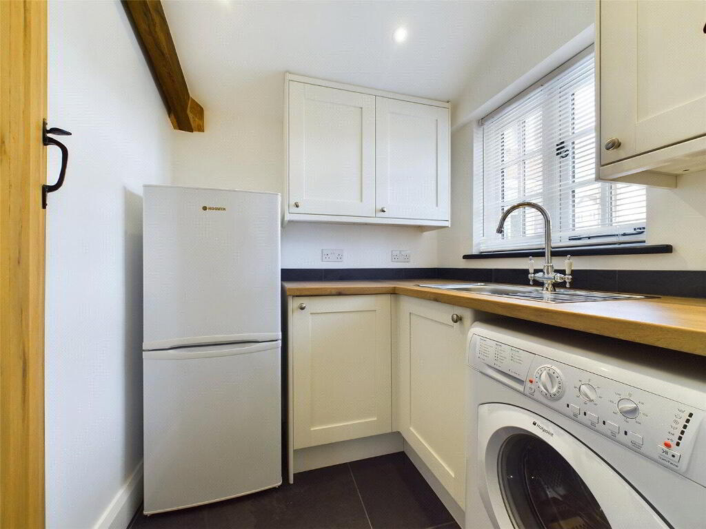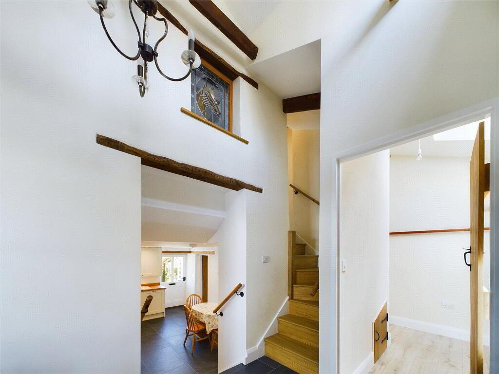 To the rear of the cottage, you will find an efficiently designed cloakroom and utility room, a convenient practicality that provides further space for those much-needed household appliances. The lower-level hallway is a particularly beautiful area of this property, with very meaningful stained glass featuring, high ceilings and a wealth of natural light. Bedroom three can be found here also, benefiting from a Velux window and plentiful floorspace.