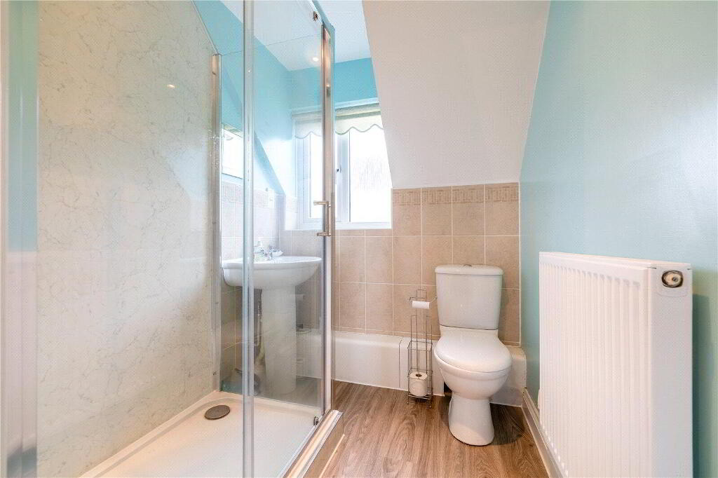 - Recently re-modelled with a 3-piece white suite comprising shower enclosure, vanity wash hand basin and hidden cistern WC. Storage cupboard. Extensive wall tiling, heated towel rail, extractor fan, shaver point.