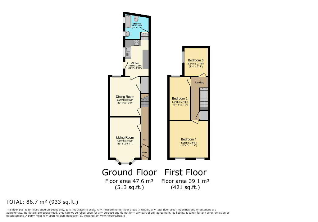 The property features 3 upstairs Bedrooms, with the Main Bedroom being notably spacious. The Living Room boasts a bay window and a Dining Room provides a further versatile living space. The Kitchen has plenty of space for food preparation and utensil storage and there is a Bathroom situated at the rear of the house.