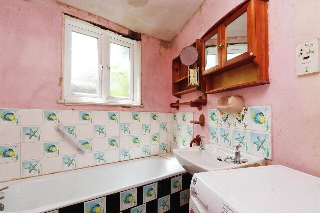 Located at the rear of the house. UPVC double glazed window. Bath and pedestal wash hand basin. Space and plumbing for washing machine. Opening to WC.