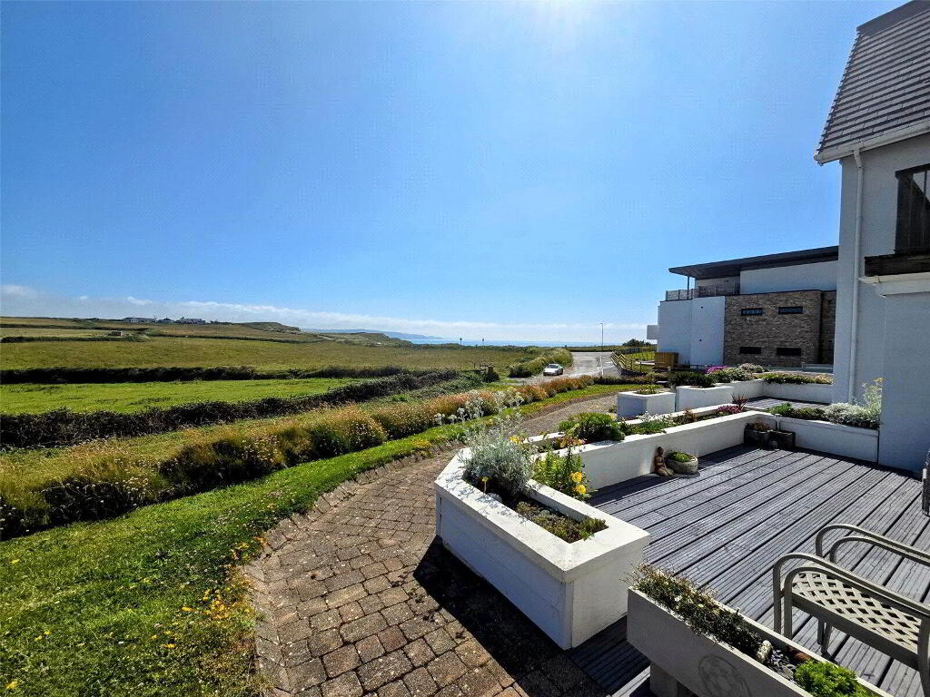 A private decking area adjoins the front of the property, bordered with a low wall with inset planter, enjoying stunning coastal and countryside views.