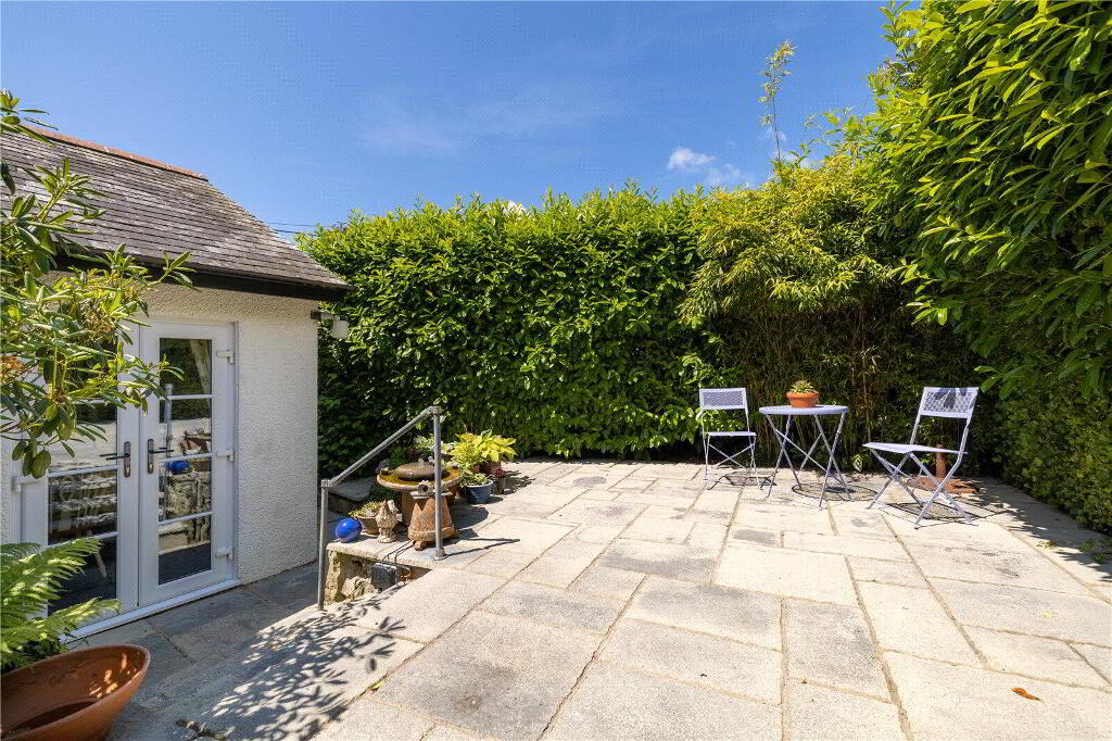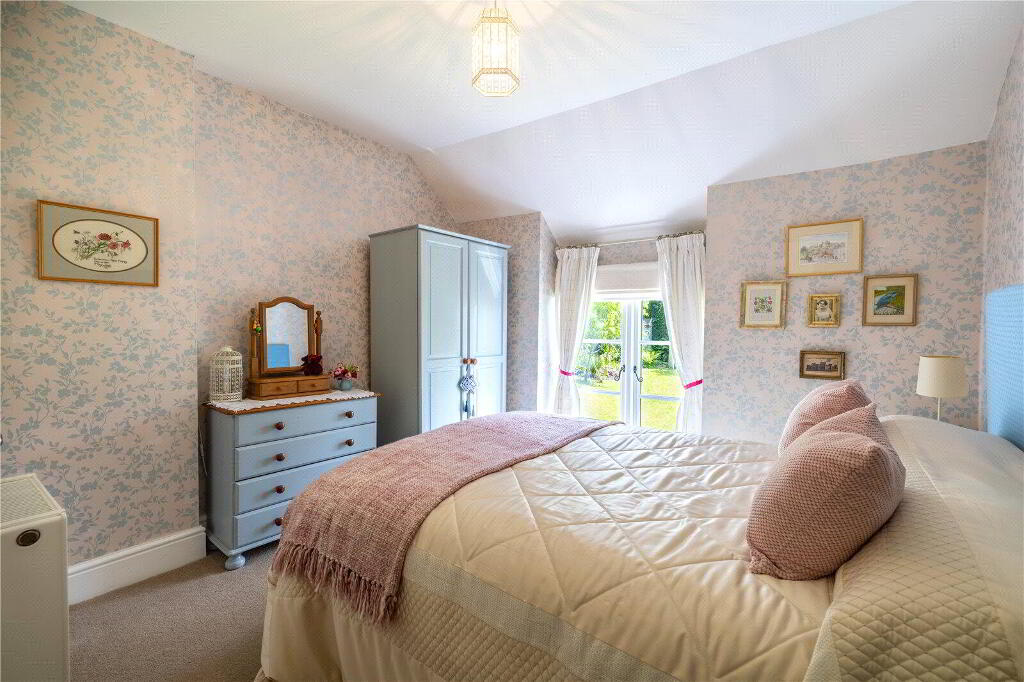 The property enjoys a gentle slopping lawn which has surrounding bedding borders with mature wrap-around gardens leading to the low-maintenance patio, offering a peaceful outdoor retreat.