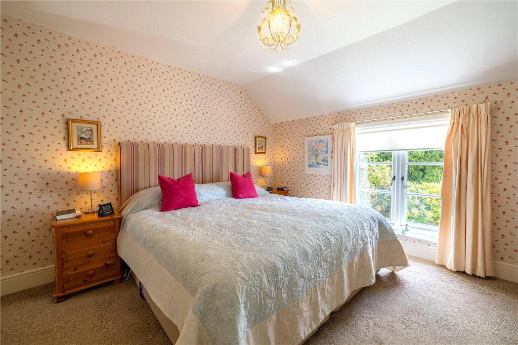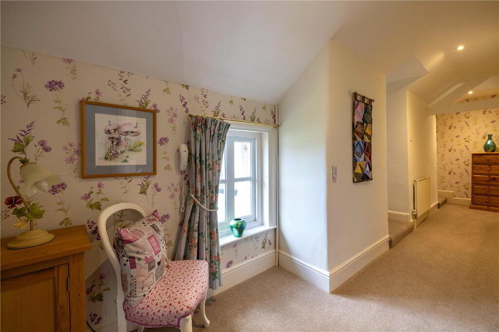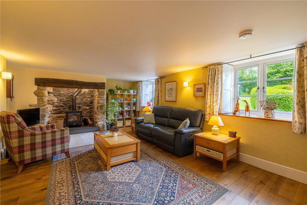 Upon entering, you are greeted by 2 spacious Reception Rooms. The Lounge boasts a striking inglenook fireplace with bread oven and offers serene views onto the mature wrap-around gardens. The Sitting Room serves as an intimate area, perfect for unwinding after a long day.