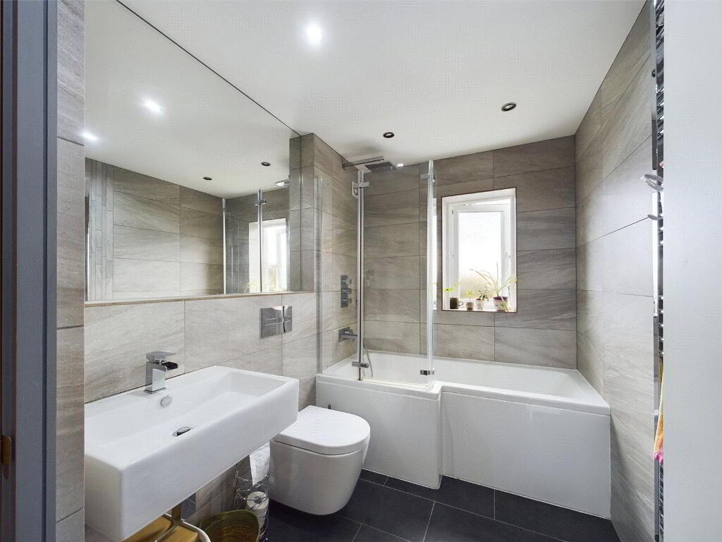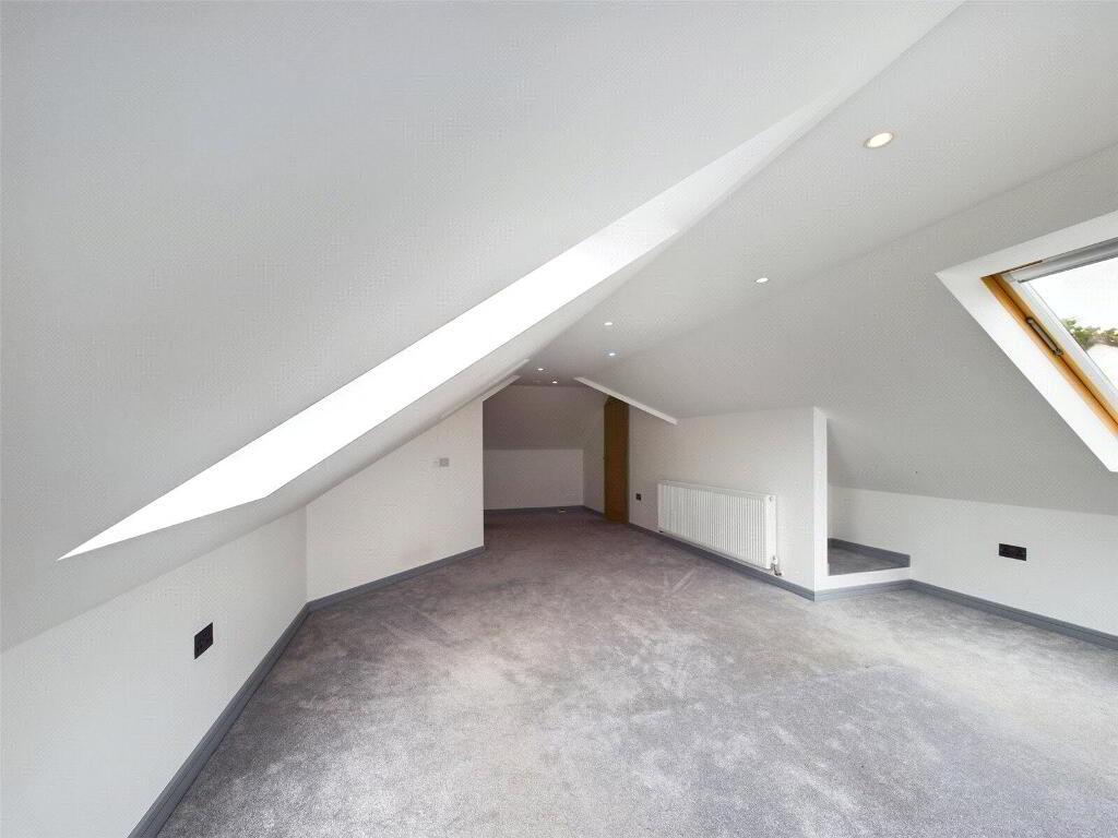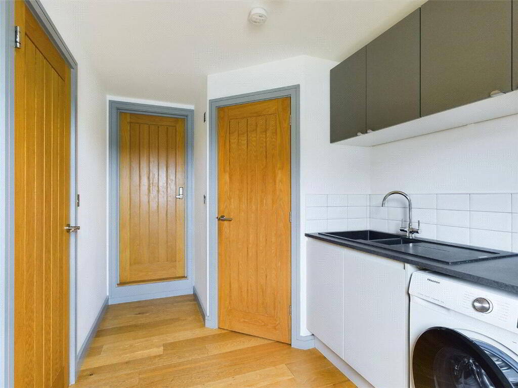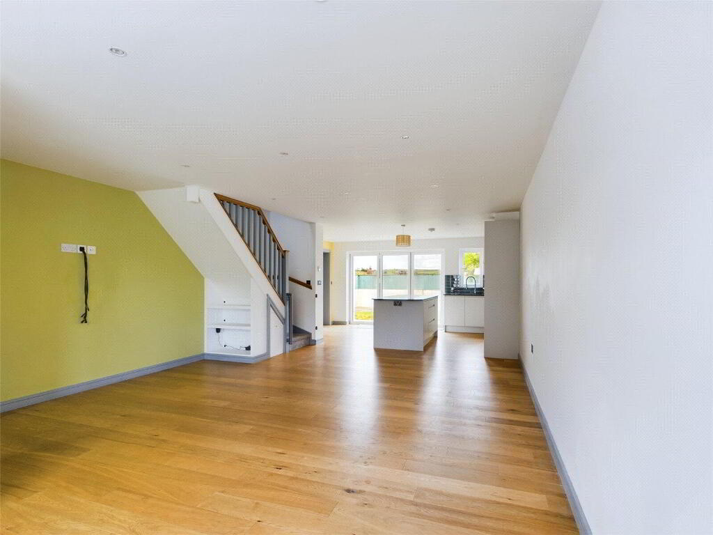 The ground floor features a tastefully designed open-plan layout, encompassing a spacious living room, dining area, and a modern kitchen with trifolding doors leasding out to the garden. The kitchen, equipped with a sleek island, is a culinary enthusiast's dream, offering ample space for cooking and entertaining. This floor also includes a convenient downstairs W/C and a utility area with access leading out to the garage enhancing the home's functionality.