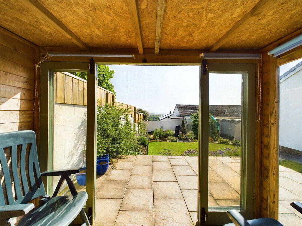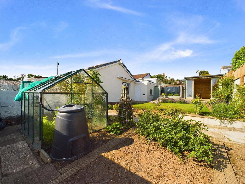 - The residence is approached over its own entrance driveway providing ample off road parking and access to the garage. Well tended front gardens laid to lawn with path to the side of the property leading to the pedestrian side gate. The enclosed rear gardens have been terraced into 3 areas comprising a productive vegetable allotment with a greenhouse and sunken beds, a lawn area with flower bed borders and a raised patio area with a useful summerhouse enjoying fantastic sea and far reaching countryside views.