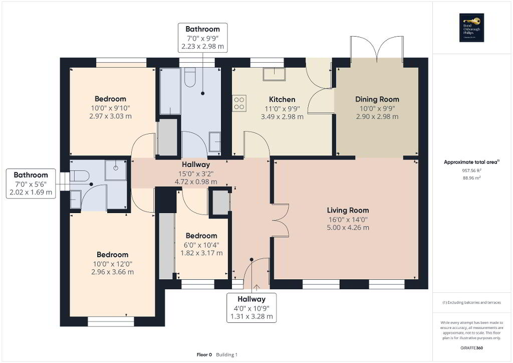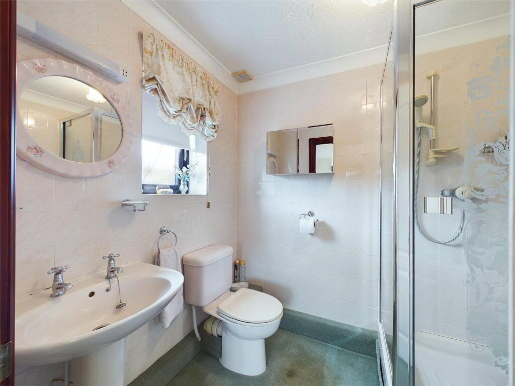 To the left of the hallway, you’ll find three bedrooms. Two of the bedrooms feature built-in storage options, while the master bedroom is complemented by its own private ensuite. The interior is completed by a family bathroom equipped with a bath, separate shower, WC, and basin.