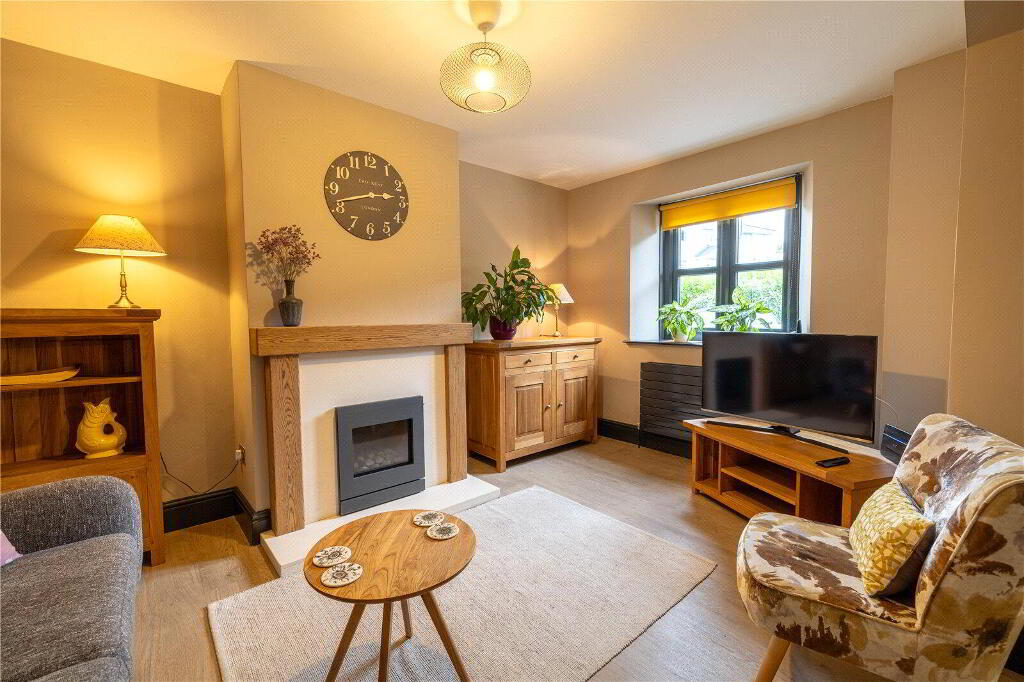 The property also benefits from solar panels, adding to its appeal for those looking for an energy-efficient home. The south-facing garden at the rear of the property is a beautiful feature. It has been curated with separate quirky areas, a patio and a lawn, offering a tranquil outdoor space for relaxation and enjoyment.