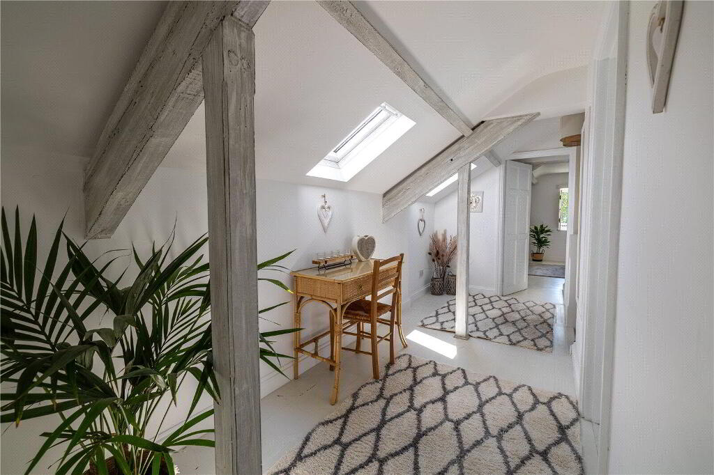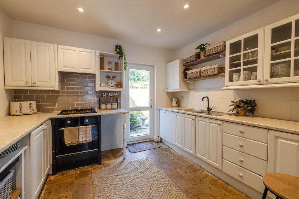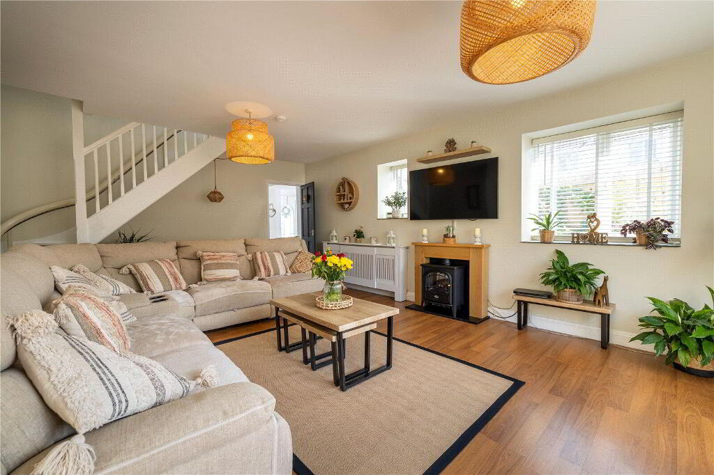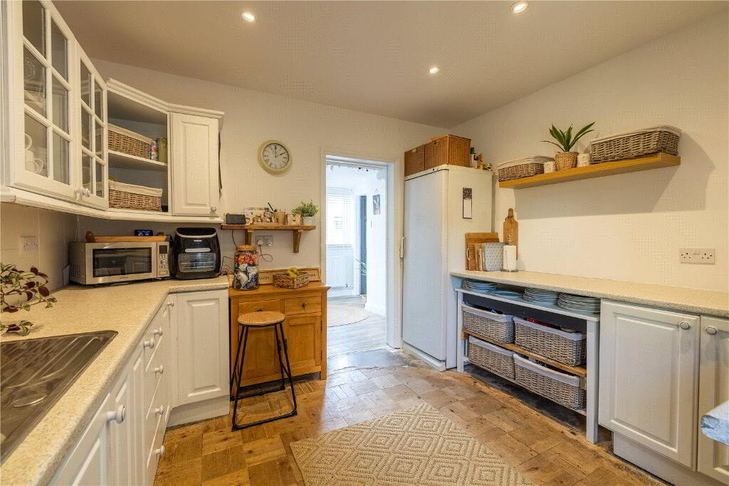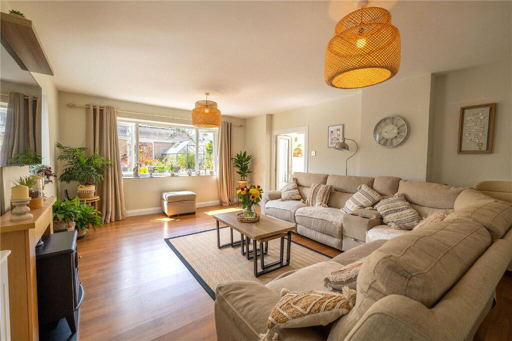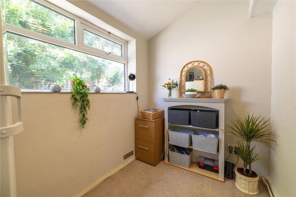 The Ground Floor is further enhanced by a versatile Study / Office, which can potentially serve as a small fourth Bedroom if needed. The heart of the home is a bright and airy triple-aspect Lounge, perfect for relaxation and entertaining. Adjacent to the Lounge, the Garden / Sun Room, currently used as a Dining Room, provides seamless access to the low-maintenance garden, ideal for enjoying meals or simply unwinding. The fitted Kitchen, with parquet flooring, has space and plumbing for a dishwasher and free-standing white goods whilst a handy block-built outside Utility has space for additional white goods and houses the newly installed boiler.