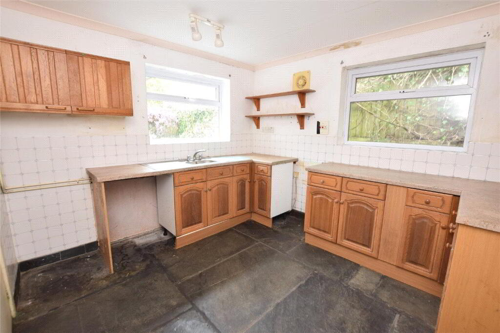 Comprising a range of base and wall units with laminate roll edge worktops over incorporating a sink/drainer unit with mixer tap. Space for free standing cooker and fridge freezer. Window to the front and side elevation. Flag stone flooring.