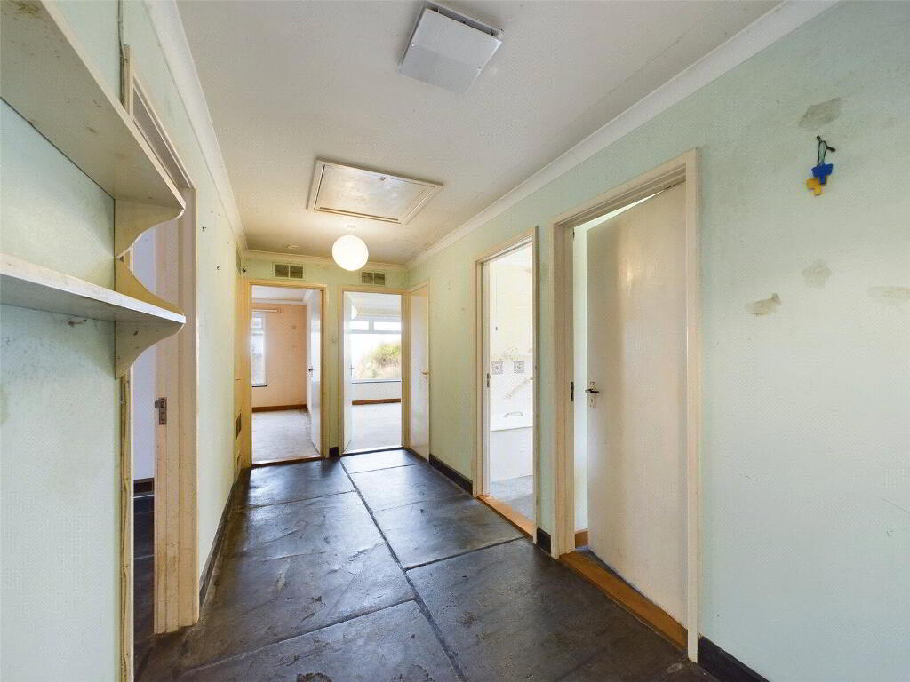 Enjoying a pleasant location on the edge of this most sought after coastal village an exciting opportunity to acquire this 2 bedroom detached bungalow enjoying spectacular coastal and hinterland views requiring complete modernisation throughout. Standing in its own generous plot with a useful garage the residence is offered to the open market with no onward chain. Virtual Tour available upon request. EPC G. Council Tax Band C.