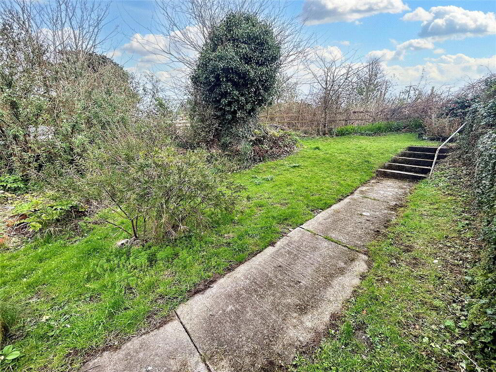 A set of pedestrian steps located besides the garage leads to the front garden principally laid to lawn with a paved path leading to the entrance porch. Pedestrian access round both sides of the bungalow leads to the rear gardens with a variety of mature shrubs and hedges. A raised patio area adjoins the bungalow leading to the Conservatory enjoying far reaching coastal views.