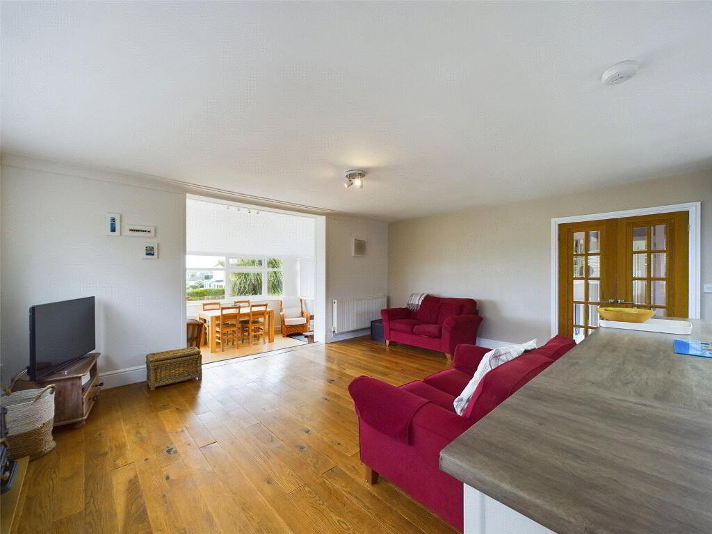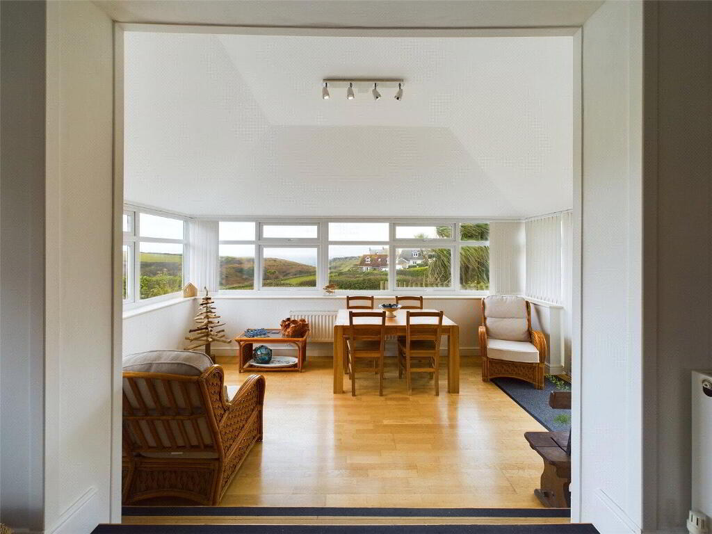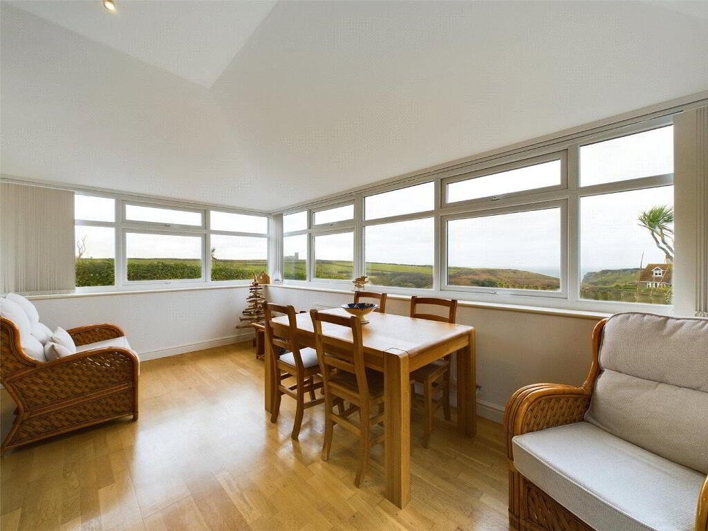 The open-plan kitchen and living space are the heart of the home, where you can whip up delicious meals and chill out with loved ones. Integrated fridge, freezer, washer dryer and dishwasher really add to the allure and appeal of the property. And with natural light flooding in, the vibe is always bright and welcoming. A large sunroom with breathtaking sea views that'll leave you speechless is included. You can even catch a glimpse of Tintagel church, adding a touch of charm to the scenery.
