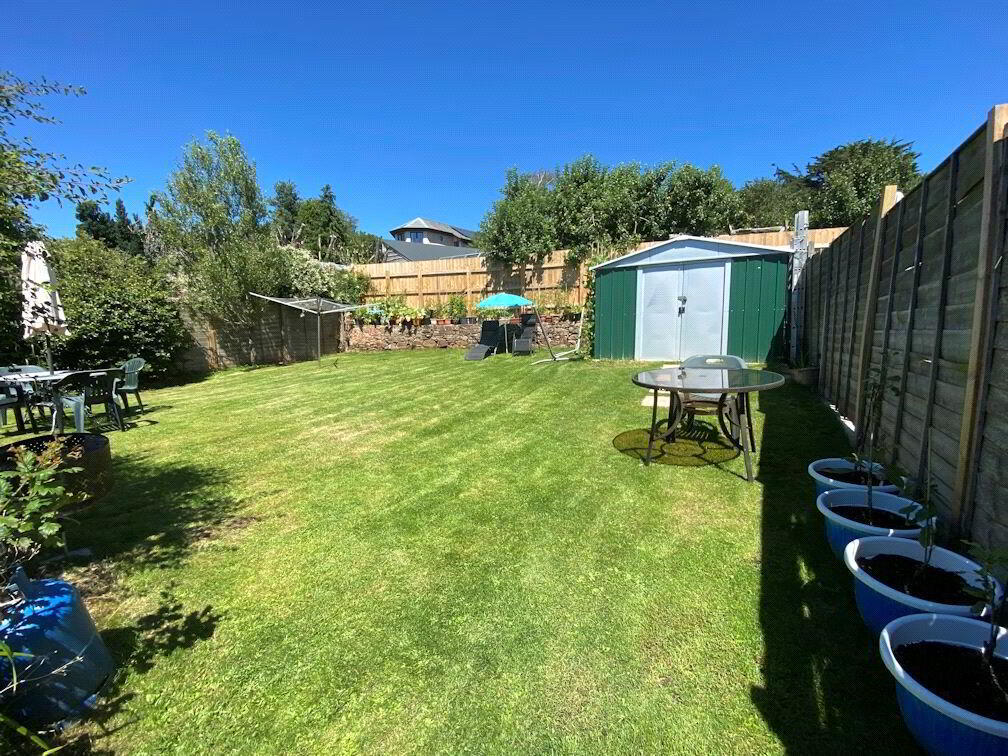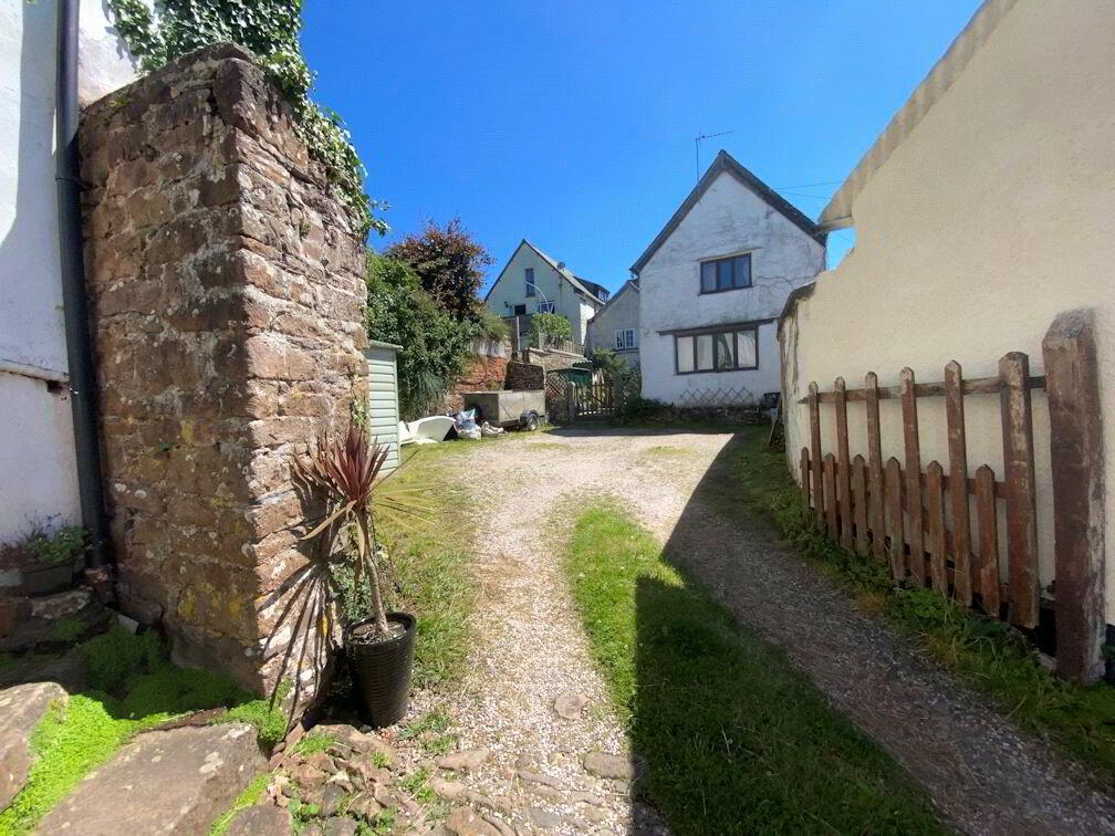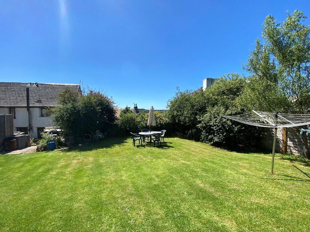 Outside there is a courtyard, ideal for alfresco dining and flower pots, which leads to a gravel driveway, which has space for up to three vehicles. To the side there are steps up to an enclosed garden, which is predominantly a level lawn, with mature shrubs.