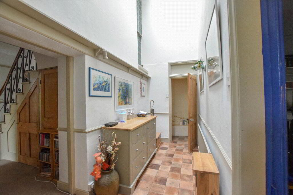 Upon entering the property you are greeted by a spacious hallway with stairs leading to the first floor. To your left is the living room. This is a bright and spacious room with two double glazed sash windows to the front and stunning feature fireplace. The hallway sweeps around to the right and leads to another internal hall, with stunning gallery landing above. To the far end there is a separate WC with hand basin. The dining room enjoys views over the courtyard garden via the two double glazed windows that flood the room with light. To the rear is the sizable kitchen with a range of fitted units and space for appliances. Impressive flagstone floors flow throughout this space and into the again spacious utility room with space and plumbing for appliances.