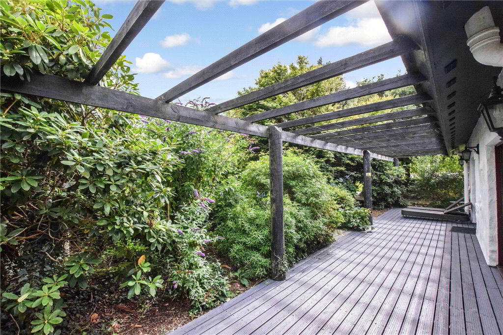 Outside the property offers driveway parking for two cars as well as both front and rear garden spaces. The front offers a superb decked area with pergola over. A sizable planting bed screens the front of the property with a range of mature shrubs. To the rear there is an enclosed lawn area with Cornish stone wall boarders.