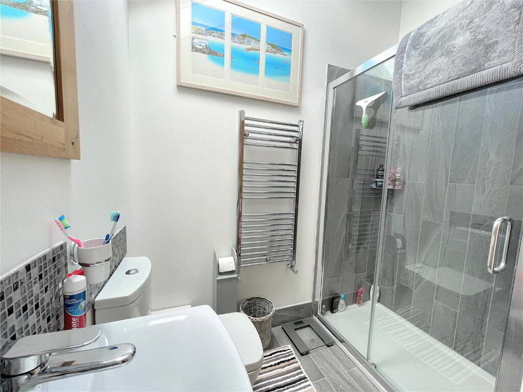 Upstairs you are met with a double bedroom with a Juliet balcony looking across the countryside Wadebridge has to offer with a good-sized family bathroom before leading through to the second bedroom with built in wardrobe space. Finally, the master en-suite bedroom allows plenty of storage space and decent sized en-suite with a sky light featured in this room.
