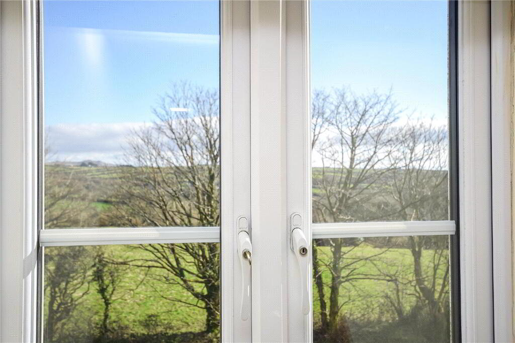 over Bodmin moor. The kitchen dining space offers plentiful room for a dining table and a range of appliances and fitted units. There is also a window and double doors to the rear garden, ideal for entertaining in the summer.