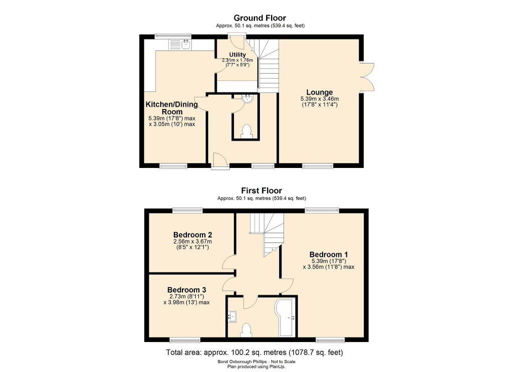 The accommodation in brief comprises an entrance hallway, living room with doors leading onto the garden, a kitchen/ dining room, useful utility room and cloakroom on the ground floor. On the first floor there are three bedrooms and a family bathroom.