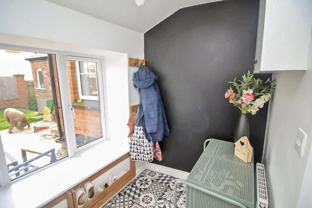 Plumbing and recess for washing machine, and tumble dryer. Door leading to enclosed rear garden. - OFFICE