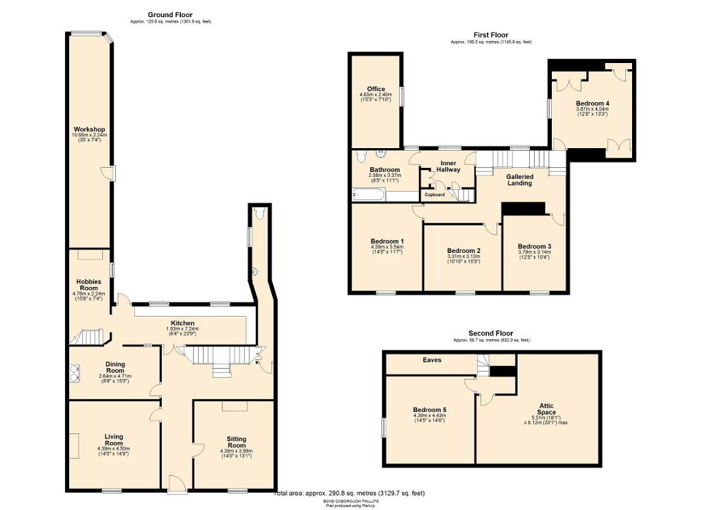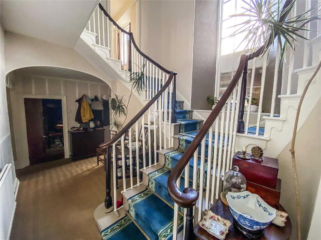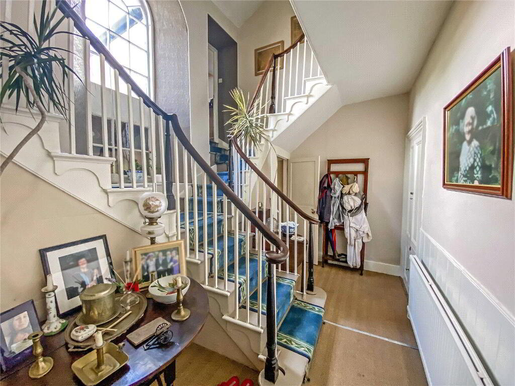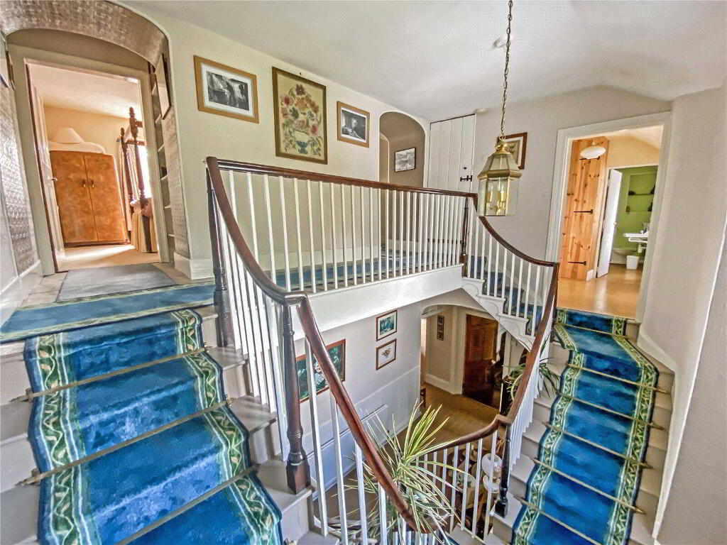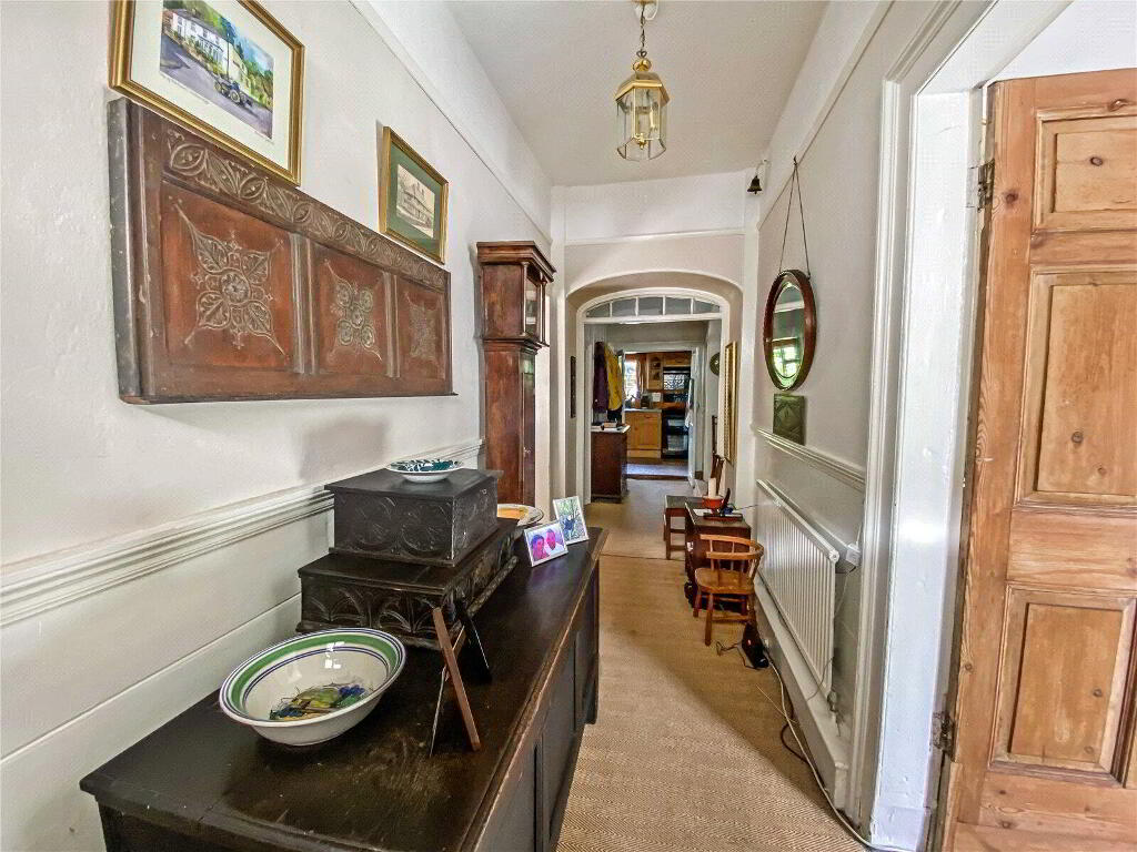 The entrance hall opens to an inner hallway where there is direct access to the kitchen which in turn flows to the dining room and where beyond, there is a hobbies room with first floor office or occasional bedroom above. On the first floor there are four double bedrooms, each accessed via architectural beaded archways, at the half landing there is a large inner hallway and family bathroom.