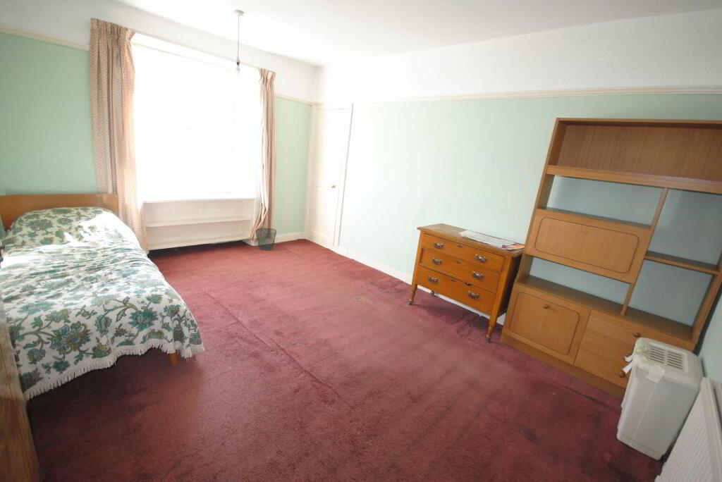 Front aspect via original sash window with deep sill, window seat with storage cupboard below, overhead light point, wall mounted radiator. - Bedroom 4