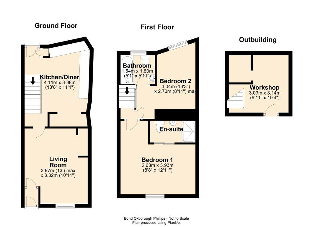 The accommodation in brief comprises an entrance porch, living room with an attractive fireplace and kitchen/ dining room on the ground floor. On the first floor there are two bedrooms, both with en suites.