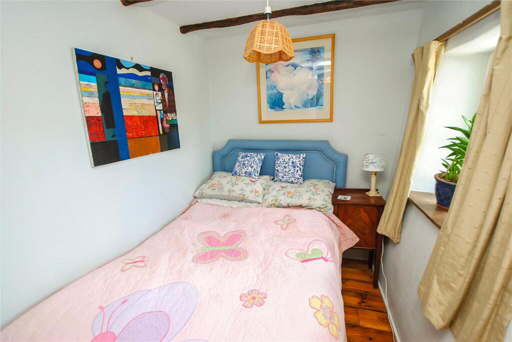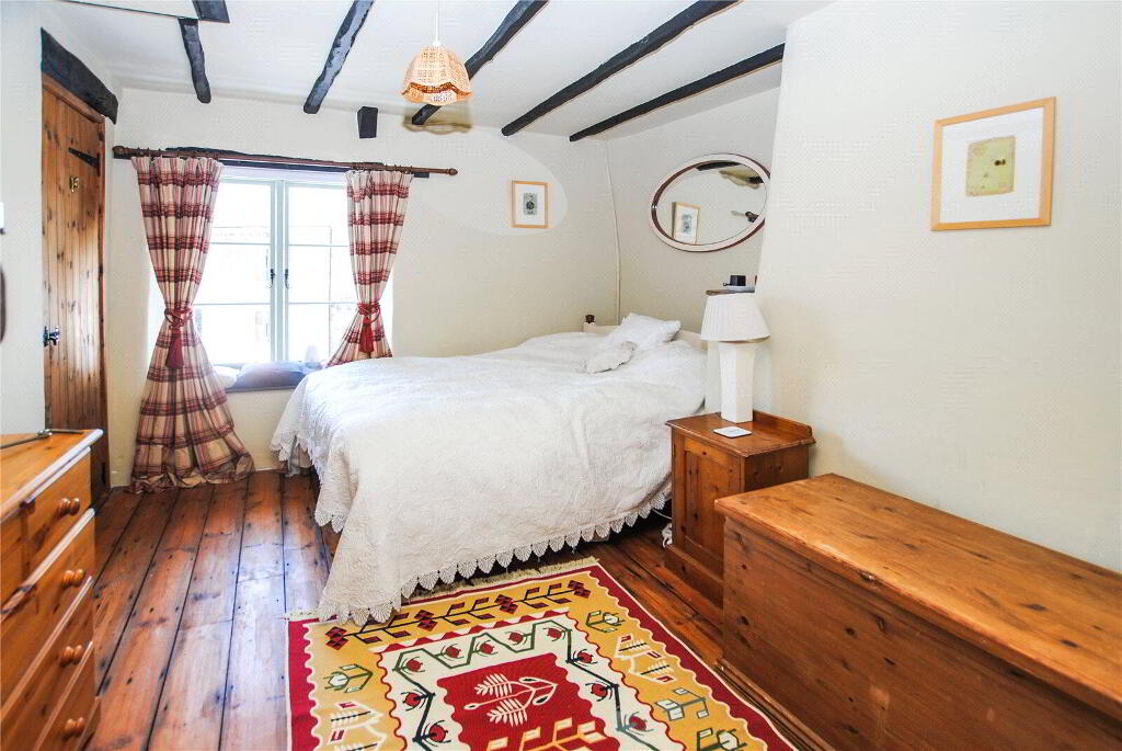 The cottage enjoys many original features, with exposed beams and an inglenook fireplace.