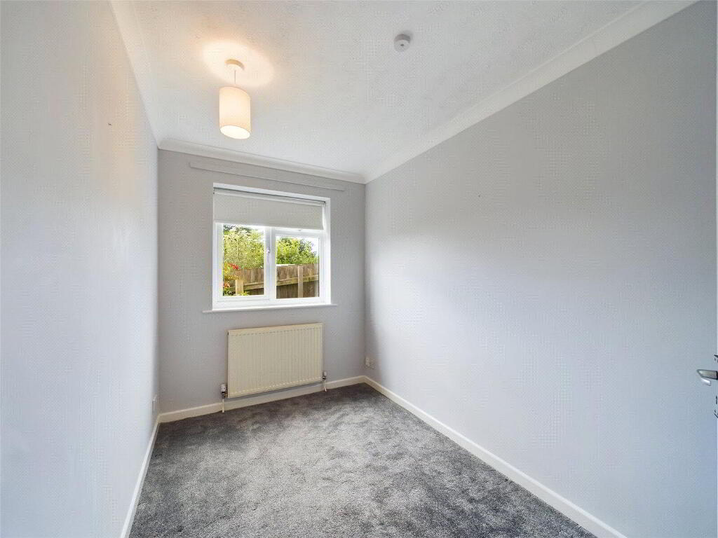 Walk in shower with electric shower over, low flush WC, vanity unit with inset wash hand basin, heated towel rail, opaque glazed window to rear elevation.