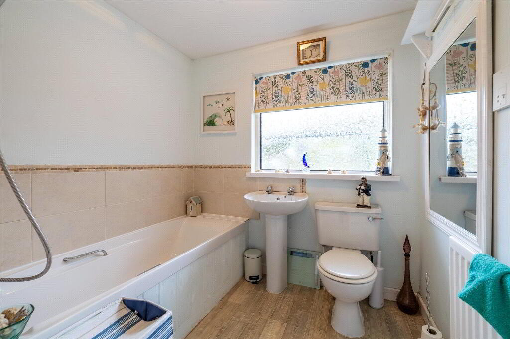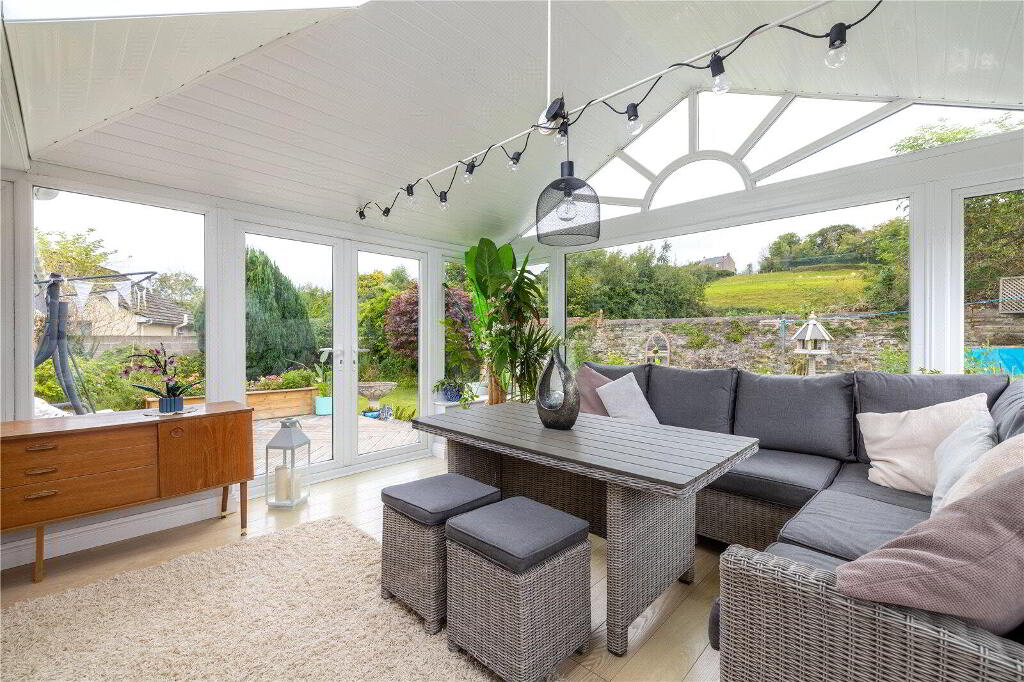 The conservatory, itself, is spacious and bright, with access to the rear decking and views over open fields and rolling countryside. The 3 double Bedrooms are all generously proportioned, with the Main Bedroom enjoying the luxury of an En-suite Shower Room. The additional Bedrooms share a stylish 4-piece Family Bathroom, completing this delightful property.