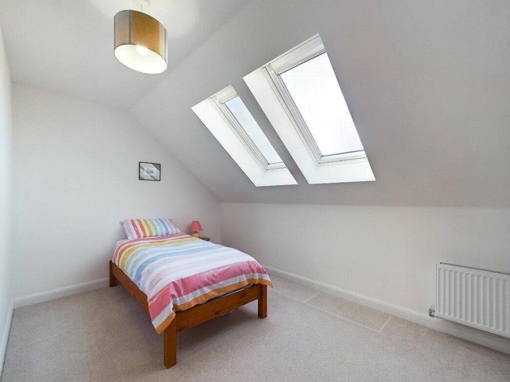 The top floor hosts two further well-proportioned double bedrooms, each enhanced by Velux style windows for natural light and character. A modern family bathroom completes the second floor layout.