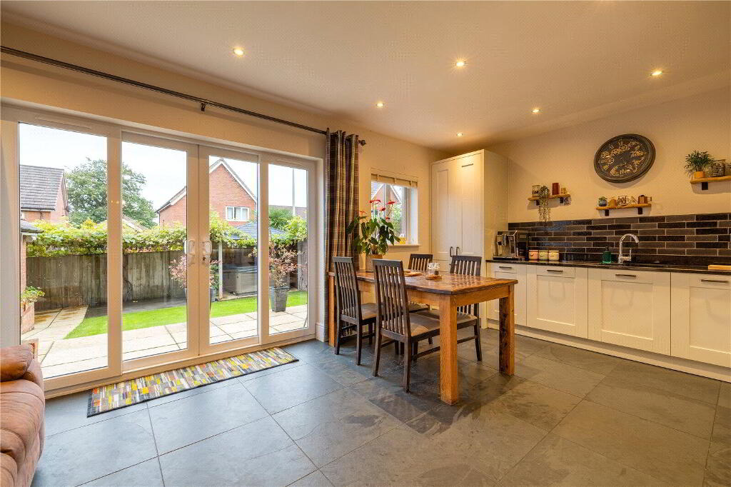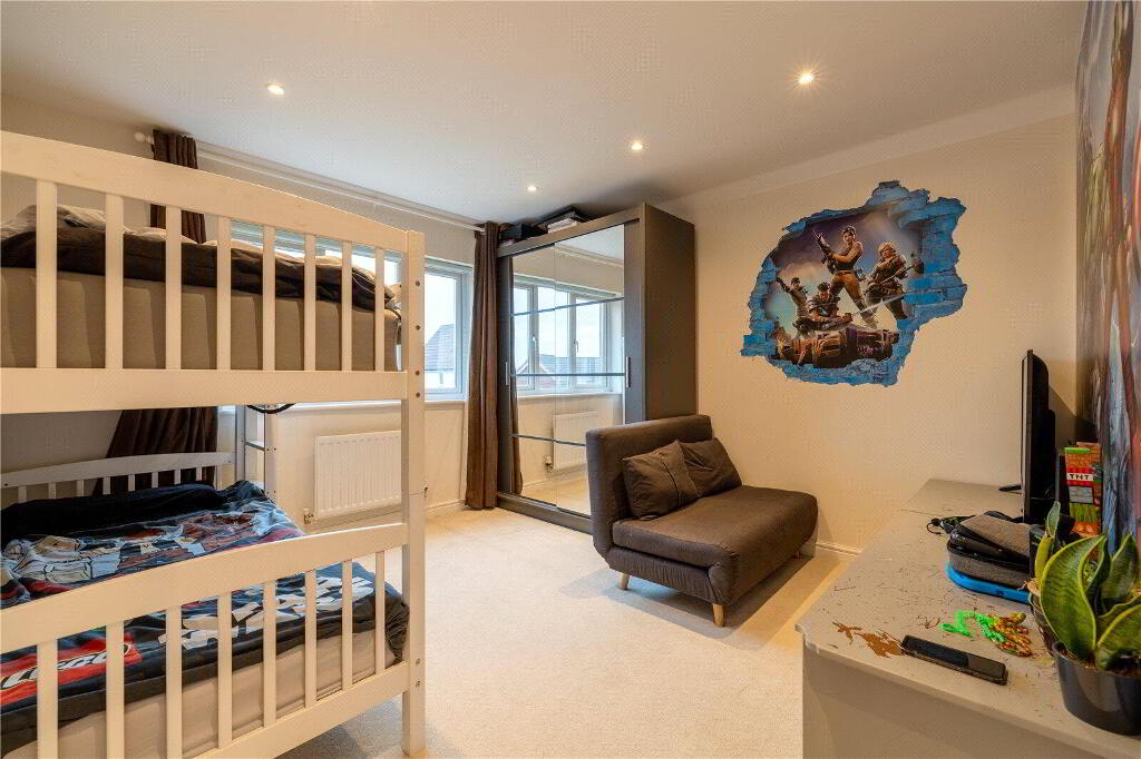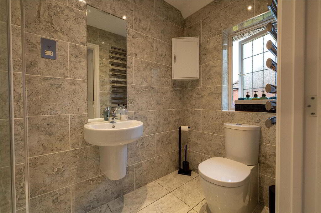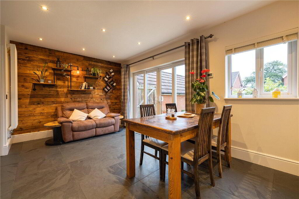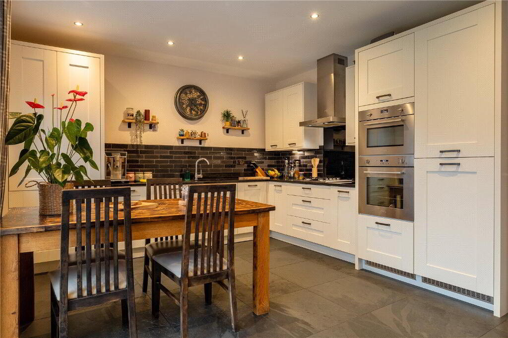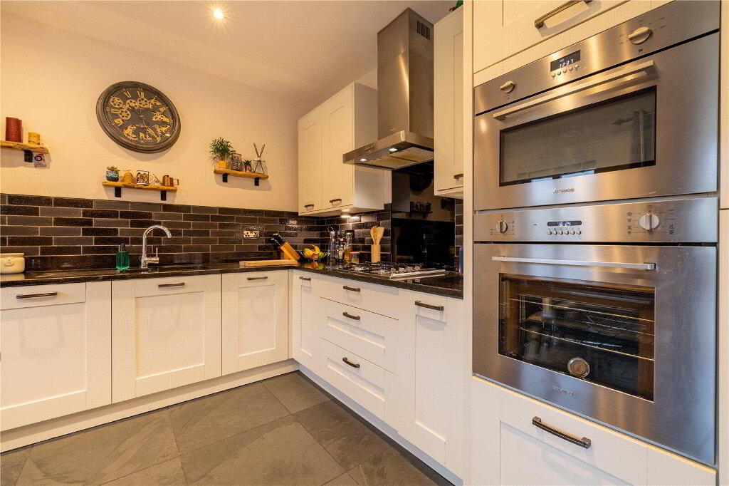 The house is approached via a neat and attractive front garden which has a charming hedge border and a small lawn. Heading inside, the dual aspect Living Room has been beautifully designed and provides a calming space in which to relax at the end of the day. Recesses are set into the wall to allow for modern AV set ups as well as the display of ornaments and decorations. The Kitchen / Diner looks and feels great to the touch given the quality materials that have been used to create the cabinets and work surfaces. Built-in appliances include a fridge / freezer, a dishwasher, a washing machine, an eye-level double oven and a 4-ring gas hob with extractor over. Whether you are looking to entertain or just have a warm social space, this Kitchen / Diner will be sure to appeal especially as it opens directly to the rear garden via the sliding doors.