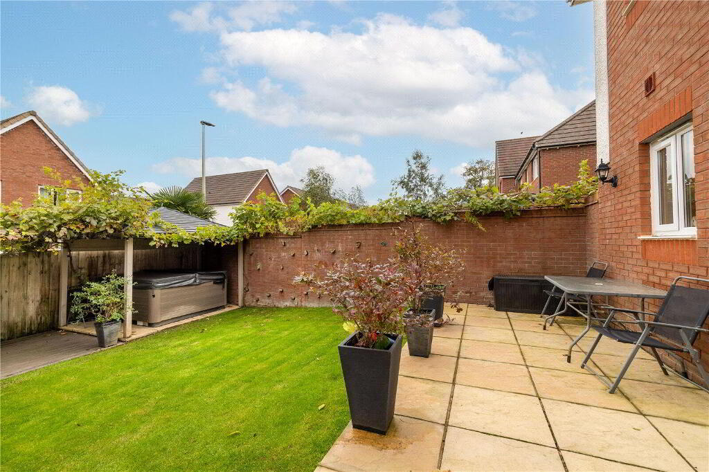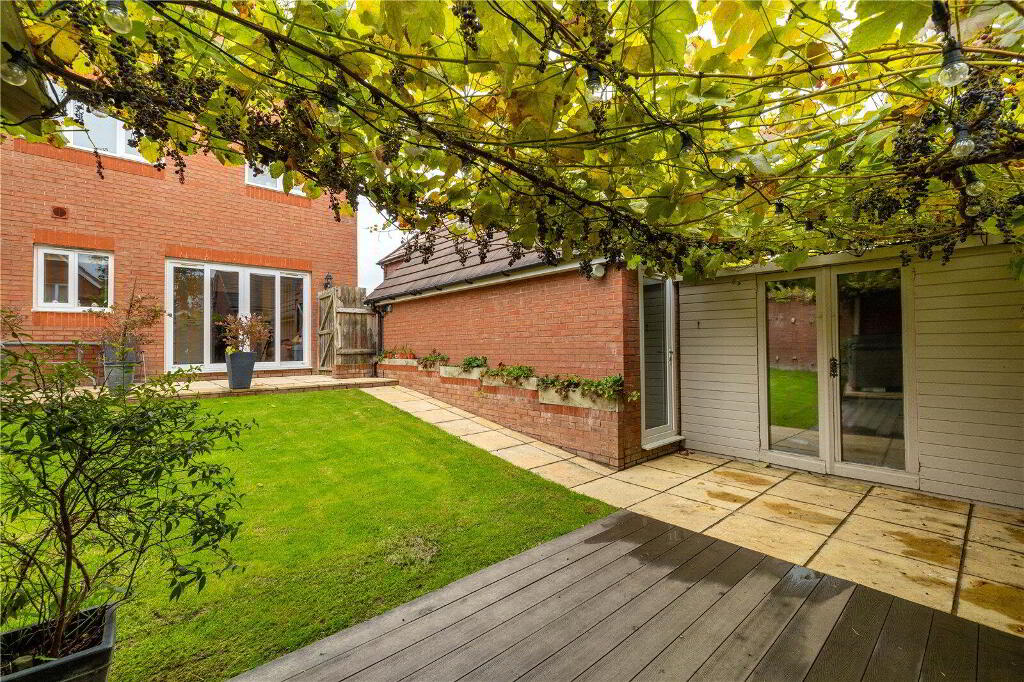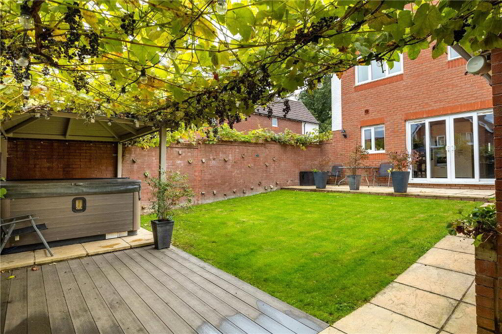 The garden has been cleverly landscaped to offer a pleasing outdoor space with maximum privacy. There is a patio, a lovely lawn with a covered decked area to the foot of the garden that provides a great space to sit out and dine under the grape vines or to enjoy a relaxing soak in the hot tub which is included in the sale. The garden also features a Garden Room that could be utilised as a home office or a useful storage space. There is rear access from the garden to the Garage as well as access to the driveway too.